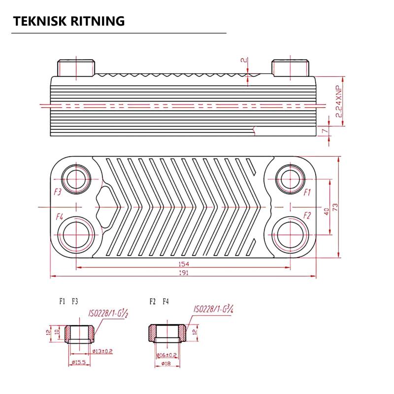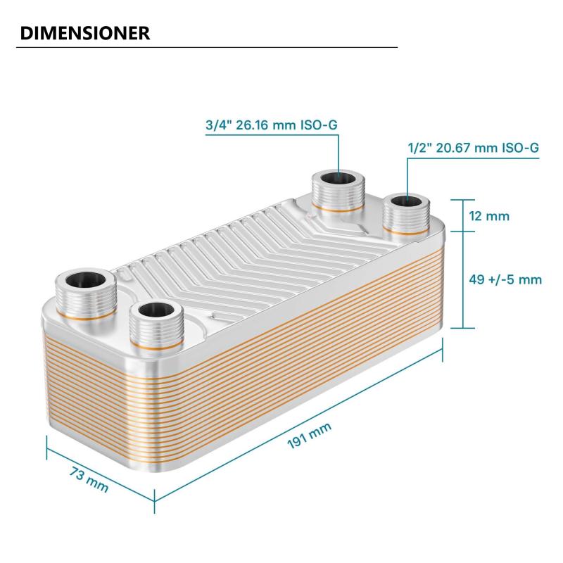 20 rader 44 kW Plattvärmeväxlare