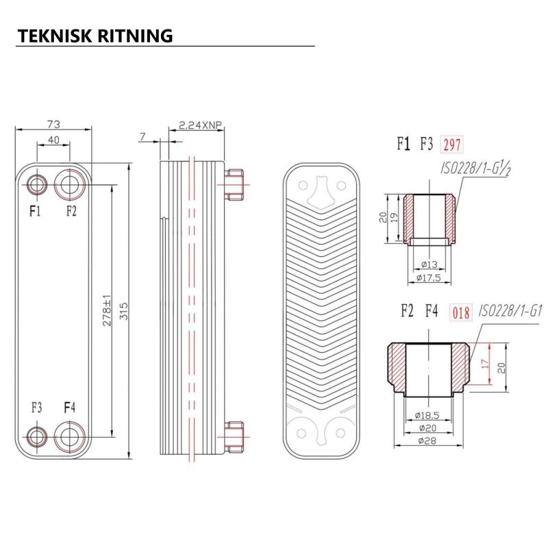 Anslutningar: F1 & F3 1/2" (12,70 mm, ISO G) - F2 & F4 1" (25,40 mm, ISO G)