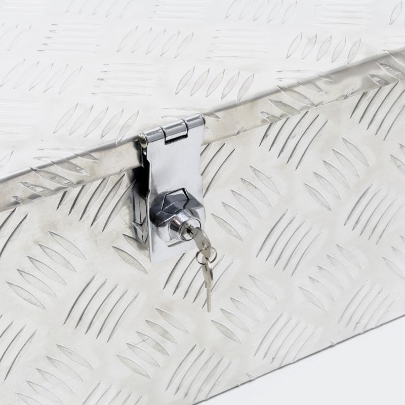 Levereras med 2 nycklar. Kraftig konstruerad aluminiumlåda till verkstad, Pick-Up eller skogsmaskiner.