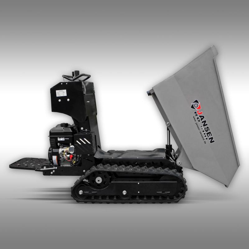 Larvdumpern är självgående och tråget kan tippas. För detta ändamål finns en hydraulisk enhet och en hydraulcylinder på maskinen. Med denna funktion skiljer sig vår minidumper från andra! Lyft- och sänkprocessen tar några sekunder. Tråget har en maximal storlek på 133 x 62 x 68 cm.