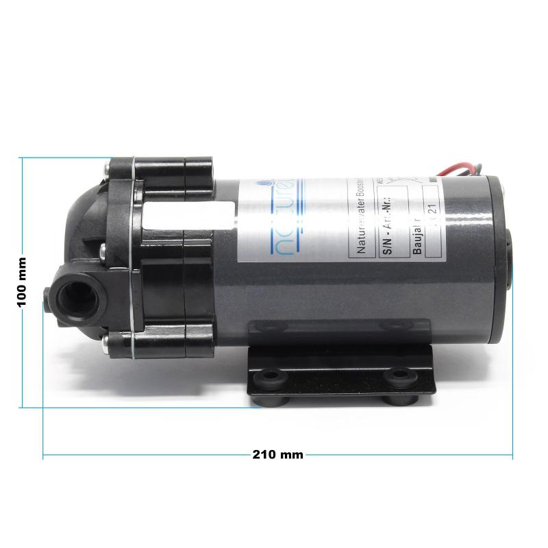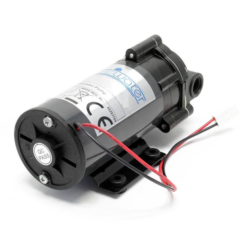 Boosterpumpar eller tryckförstärkningspumpar är det idealiska tillägget till system med omvänd osmos om det befintliga vattentrycket inte är tillräckligt för att driva systemet eller om utbytet av ultrarent vatten ska ökas. Gummifötter dämpar pumpens vibrationer och löpljud.