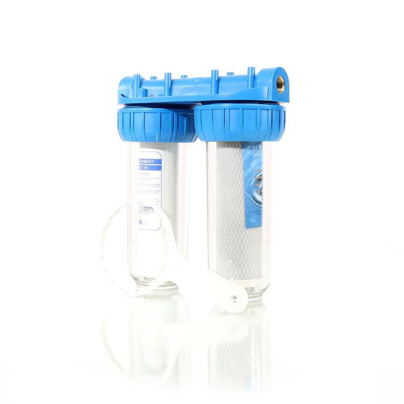 dubbla filtersystem med två 10-tums 5 mikron sedimentfilter genererar