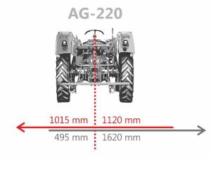 Den AG-220 kan monteras på båda sidor (trepunktslyft från kategori I och II) och är därför universellt användbar. Till skillnad från många konkurrerande produkter drivs denna modell med en kraftfull växellåda på 1 000 varv/min, vilket är särskilt nödvändigt för frontmonterade kraftuttag.