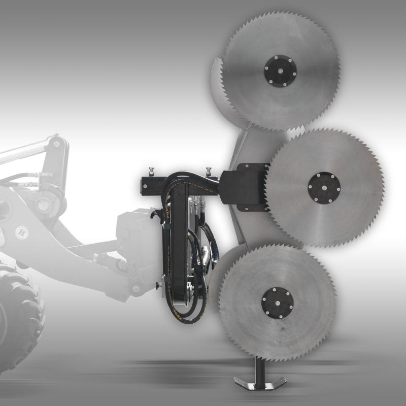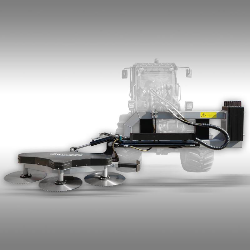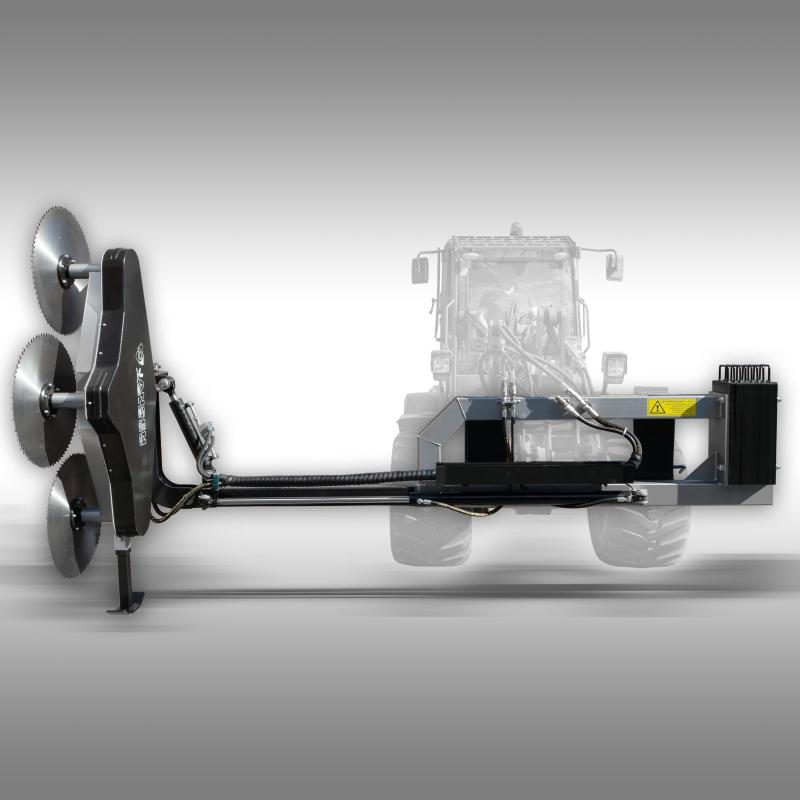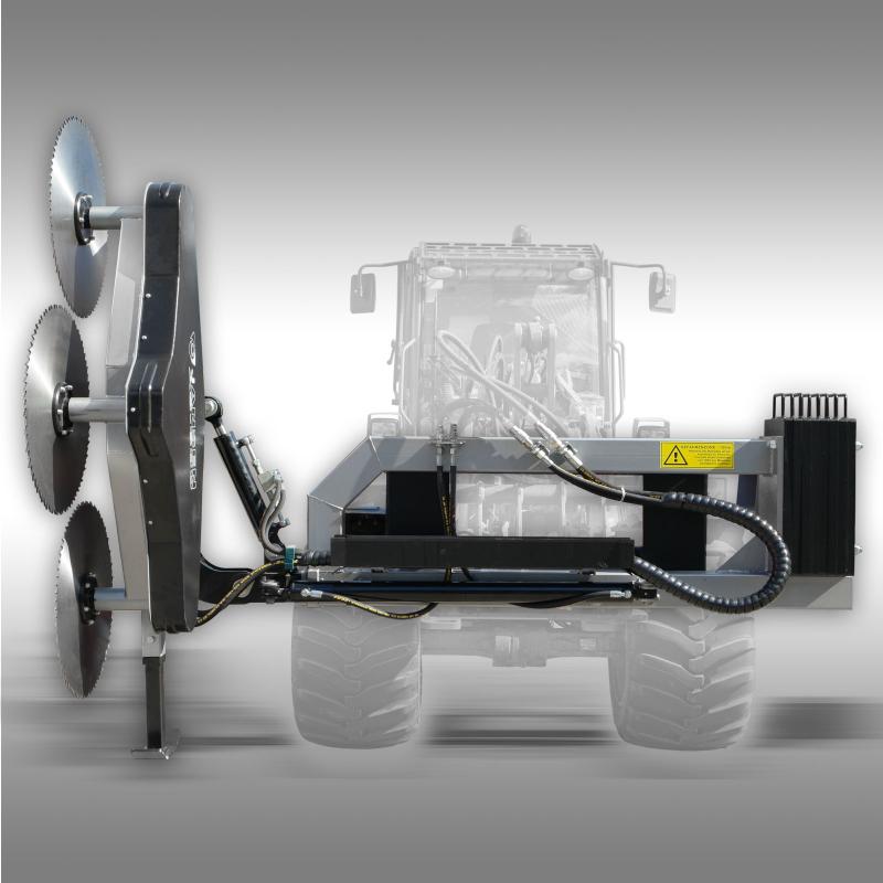 Monterad på hjullastaren, teleskoplastaren eller traktorns frontlastare drivs grensågen hydrauliskt och via kilremmar. Bommen kan skjutas ut åt sidan med ca. 100 cm. Räckvidden från mitten av frontlastarens upphängning till sågklingorna är cirka 155 cm. Motvikten monterad på sidan (cirka 265 kg) lägger endast en minimal belastning på svängarmen på bärfordonet, även när sågen är helt utsträckt. Tack vare den hydrauliska lutningsanordningen kan du också nå platser som är svåra att komma åt.