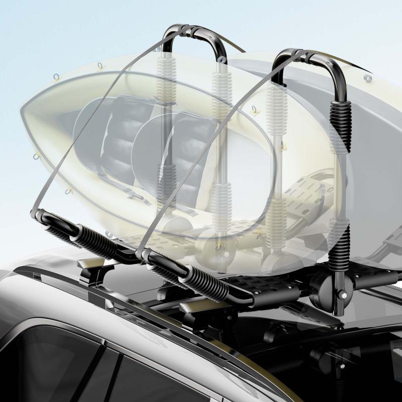 En speciell egenskap hos kajakhållarna är deras flexibilitet. Båthållarens mittarm kan fällas 180°. Denna funktion möjliggör optimal anpassning till lasten och underlättar även förvaring av hållarna när de inte används. Mittarmen har en höjd på 480 mm och stödytan mäter 730 mm i längd.