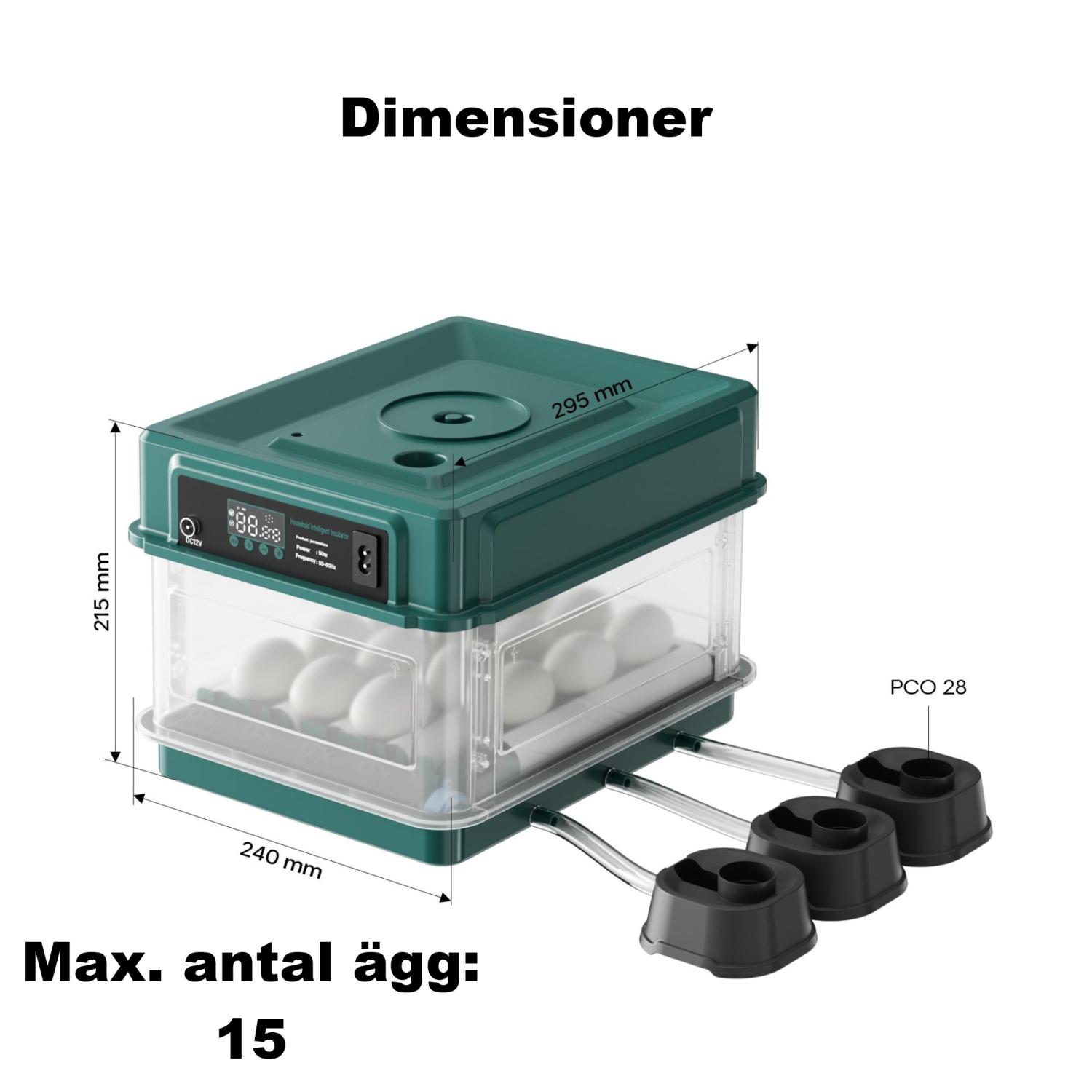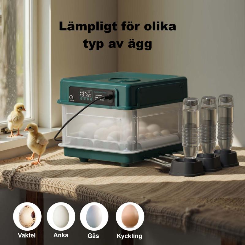 - Äggkläckningsmaskin för upp till 15 ägg