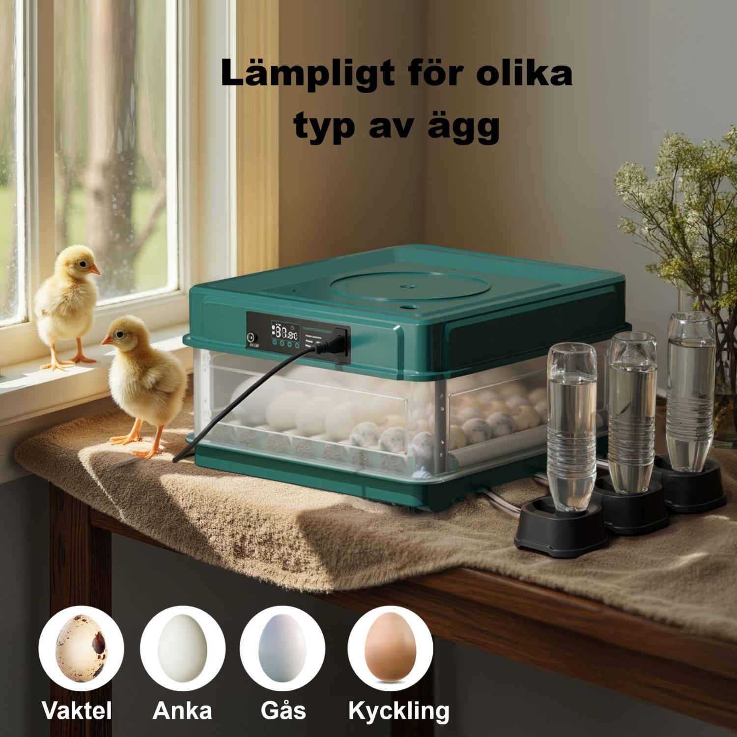 - Äggkläckningsmaskin för upp till 30 ägg