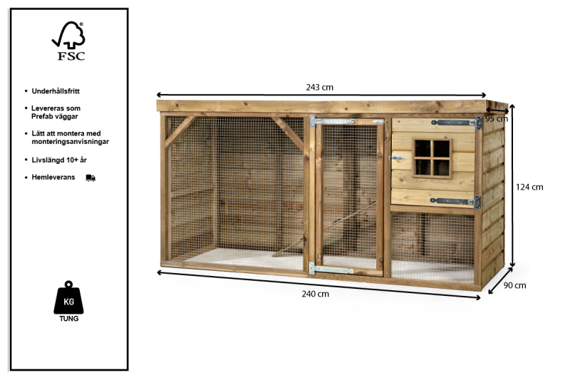 Max. yttermått (inkl. tak): 243 x 95 x 124 cm