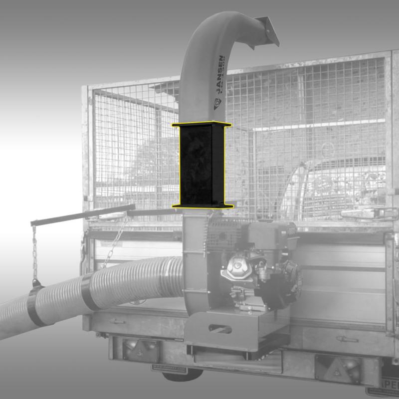 Denna utkastnings förlängning / rörförlängning är ett lämpligt tillbehör till vår Jansen LG-1300 lövblås och gör att bladen kan lastas på högre släp och containrar.
