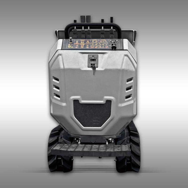 Den hydrostatiska drivningen säkerställer exakt och steglös hastighetskontroll, vilket gör att du enkelt kan ta dig fram i utmanande terräng. Tack vare banden erbjuder dumpern utmärkt grepp och stabilitet på en mängd olika underlag, från leriga byggarbetsplatser till sluttningar.