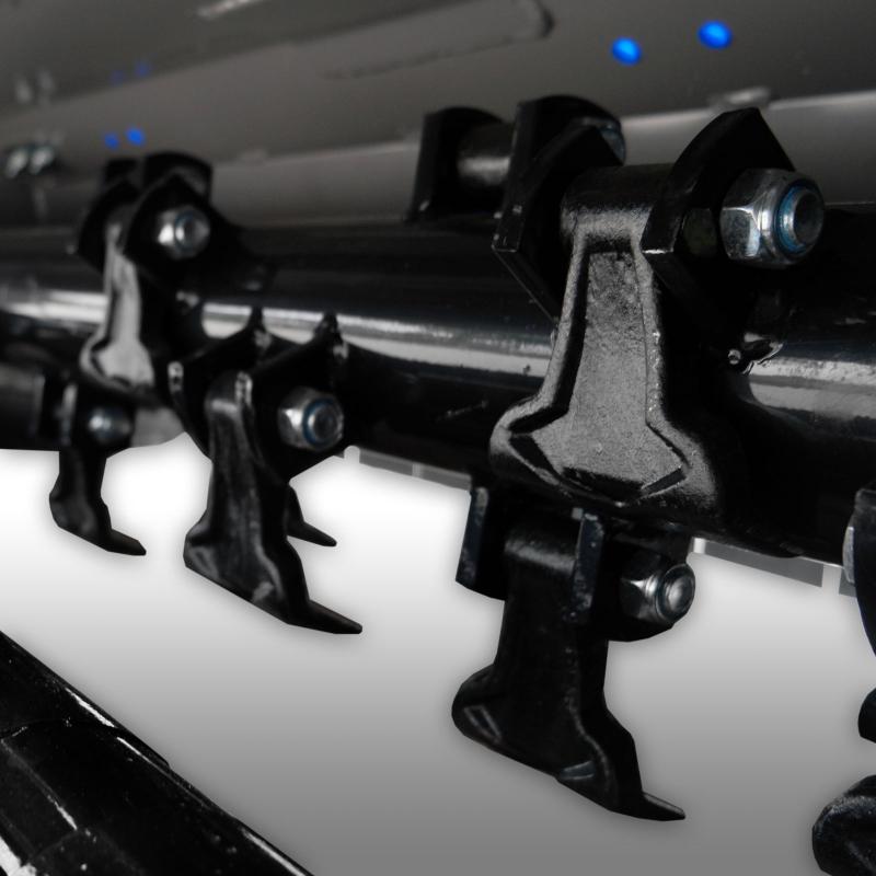 Den tyngsta växellådan i sin  klass har installerats i denna slaghack. Till skillnad från  gräsklipparna som är utrustade med lätta Y-blad, har denna  slåttermaskinen de bästa prestandaegenskaperna tack vare den höga  svänghjulsmassan, som är ett resultat av de tunga hammarbladen och det  tyngre skaftet. De 24 specialhärdade, 0,8 kg hammarknivarna hackar  materialet till ett minimum.