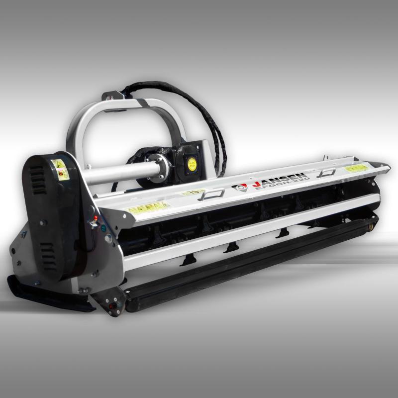 Vår slaghack EFGCH-220 med hydraulisk sidoförskjutning kännetecknas av dess särskilt robusta konstruktion. Den har en speciellt förstärkt vinkelväxel och är idealisk för användning som betesputs, traktorgräsklippare, slåttermaskin etc. Traktorslaghacken har en klippbredd på 210 cm och drivs av kraftöverföringsaxeln som ingår i leveransen. Med hjälp av det hydrauliska sidoförskjutningen kan maskinen flyttas till vänster och höger. För denna funktion behöver du en hydraulisk styrkrets på din traktor, eftersom slyröjaren har en dubbelverkande hydraulcylinder för detta.