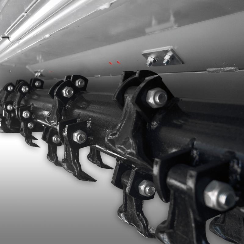 Den tyngsta växellådan i sin klass har installerats i denna slaghack. Till skillnad från gräsklipparna som är utrustade med lätta Y-blad, har denna slåttermaskinen de bästa prestandaegenskaperna tack vare den höga svänghjulsmassan, som är ett resultat av de tunga hammarbladen och det tyngre skaftet. De 30 specialhärdade, 0,8 kg hammarknivarna hackar materialet till ett minimum. Den dubbla spiralrotorn med sin jämna rotorbelastning säkerställer särskilt smidig körning och lång hållbarhet med betydligt mindre ansträngning. Även mycket högt gräs, buskiga eller halmklipp är inga problem med denna gräsklippare!