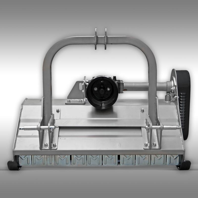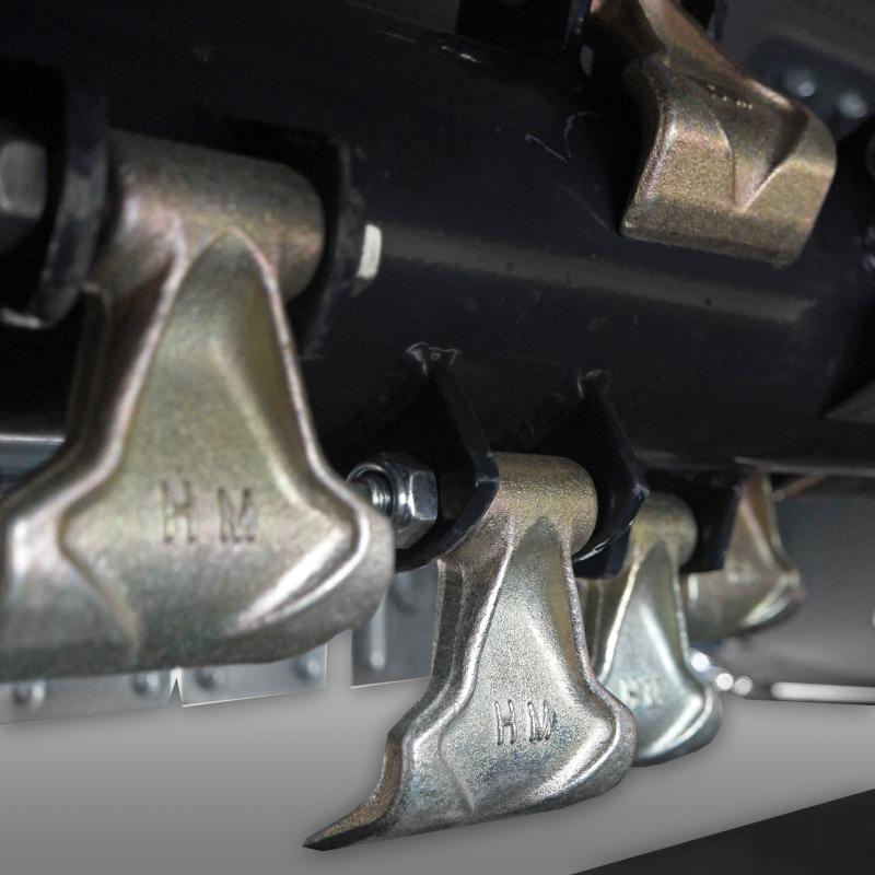 Denna slyröjare har den tyngsta växellådan i sin klass. Till skillnad från andra slaghackar utrustade med lätta Y-knivar, har denna slåttermaskin de bästa prestandaegenskaperna tack vare den höga svänghjulsmassan, tunga hammarslagor och den tyngre axeln. De 16 speciellt härdade hammarslagor, som väger 0,4 kg, hackar materialet till ett minimum.