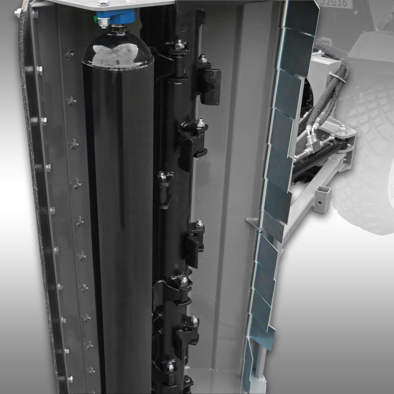 För justering krävs hydrauliska anslutningar på traktorn (2x dubbelverkande), eftersom klipparen använder hydraulcylindrar för förskjutning och lutning. Om du väljer det extra tillbehörspaketet behöver du bara 1x dubbelverkande hydraulisk anslutning och 1x 12-volts elanslutning. (Kontakt ingår ej!)