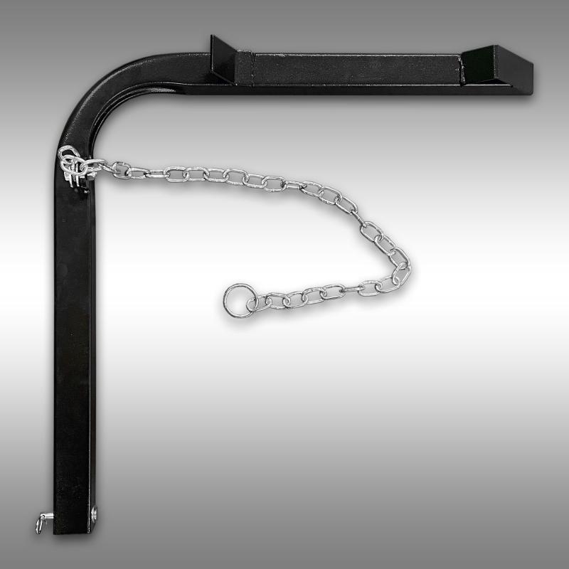Vår mekaniska stocklyftare hjälper dig med en stabil arm att lyfta tjockare stockar eller tungt virke som ligger på marken. En kedja förbinder stocklyften med klyvkilen och fästas enkelt. När kilen nu rör sig upp reser sig stocklyftaren med och lägger veden under klyvkilen på vedklyvens bottenplatta, där den sedan lätt kan klyvas.
