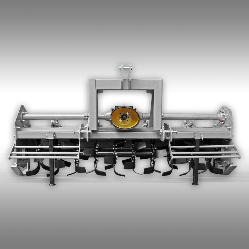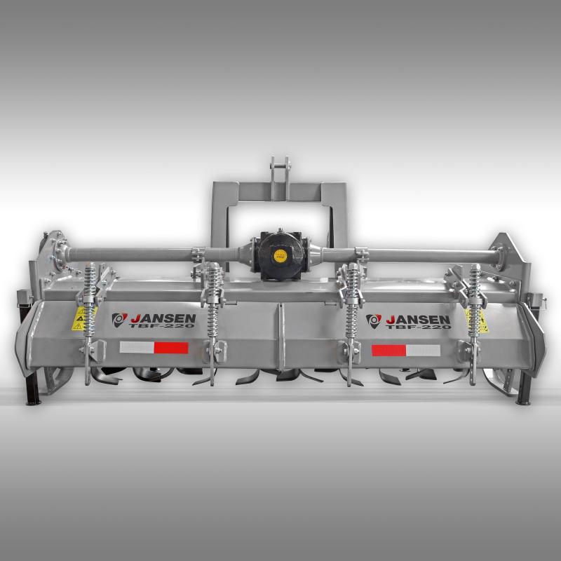 Oavsett för jordbruks- och jordbruksarbete, vinodling, trädodling, fruktträdgårdar eller trädgårdsodling - traktor jordfräsen TBF-220 är perfekt för alla typer av jordodling. Rotorkultivatorn har ett specialförstärkt vinkelväxel och kännetecknas av sin särskilt robusta konstruktion. Fräsaxeln drivs av i oljebadet liggande kugghjulen. Bakluckan med integrerad utjämningsfjäder avlägsnar ojämnheter i frästa jorden.