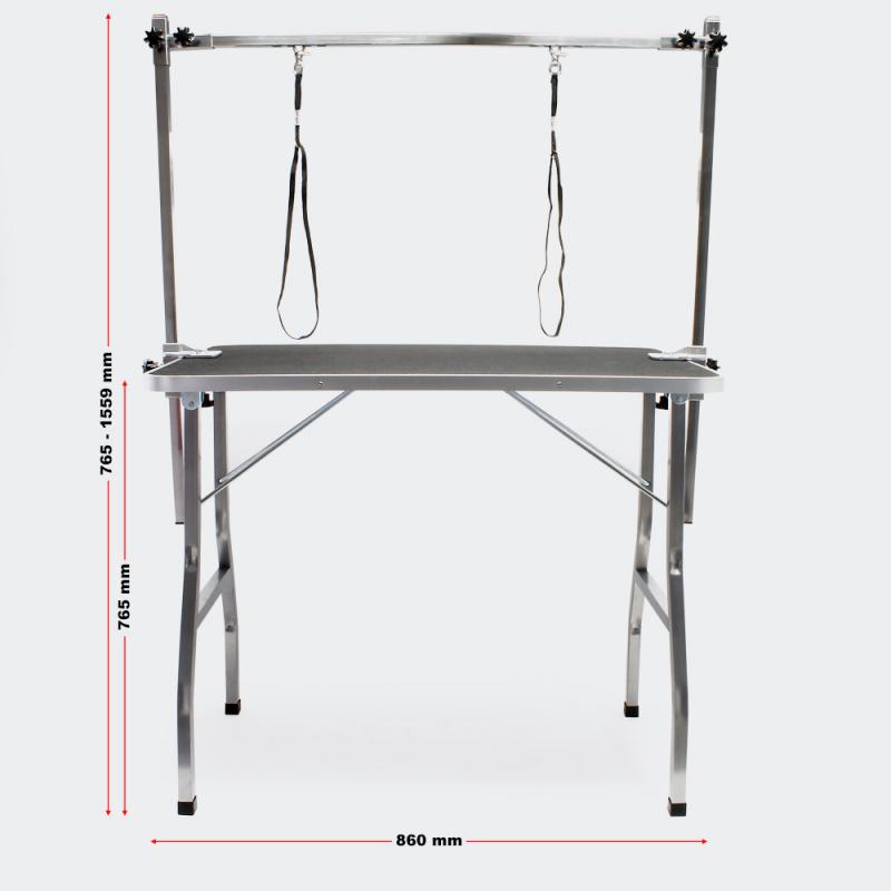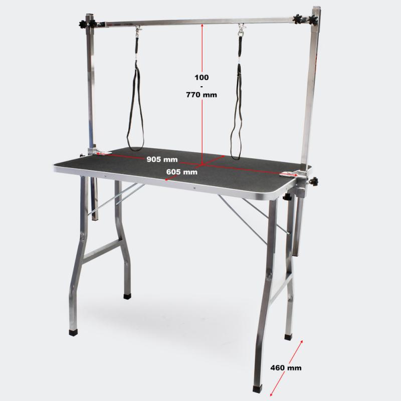 Trimbord till professionell djurvård. Bordet är hopfällbart, lätt att demontera, enkelt att transportera och flexibelt användbar. Även lagringen när bordet inte behövs är mycket lättare än andra modeller.