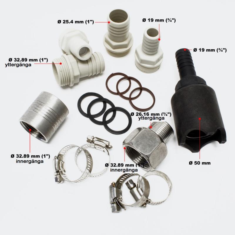En uppsättning bestående av en självsugande membranpump monterad på en bottenplatta, en automatisk bränslepistol av rostfritt stål, 2 doseringsslangar med en sil av plast och olika anslutningsstycken. AdBlue®-pumpen har en motorspänning på 230 volt. Den har ett flöde på 40 liter per minut, maximala sughöjden är 5 m och maximala uppfordringshöjden är 15 m. Det maximala arbetstrycket är 2,8 bar.