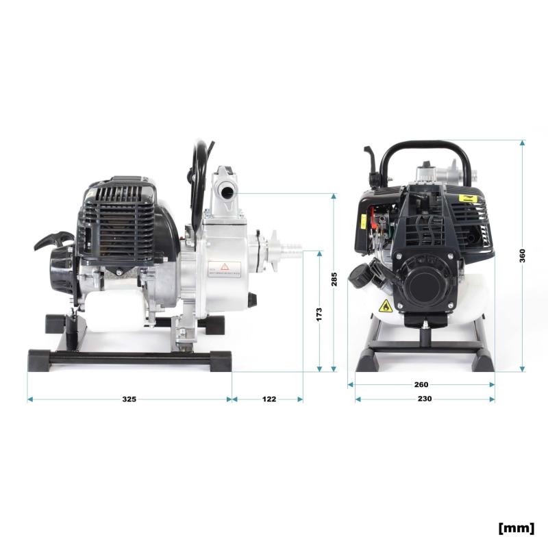Tack vare sin bensindrivna motor och generösa 1,1-literstank kan pumpen användas även i avlägsna områden utan tillgång till elnätet. Dess stabila bas och kompakta design möjliggör även mobil användning.