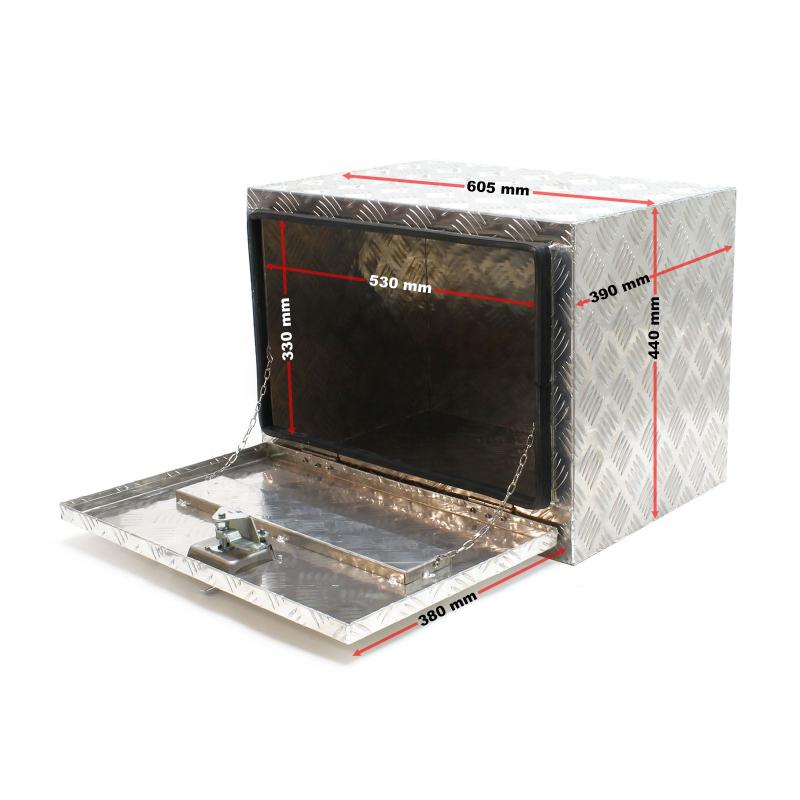 Oavsett om den är monterad på en lastbil, släpvagn eller pickup, om den används på en byggarbetsplats eller i ett garage: denna verktygslåda av högkvalitativt aluminium är en allroundlösning för att säkert förvara verktyg och andra föremål.