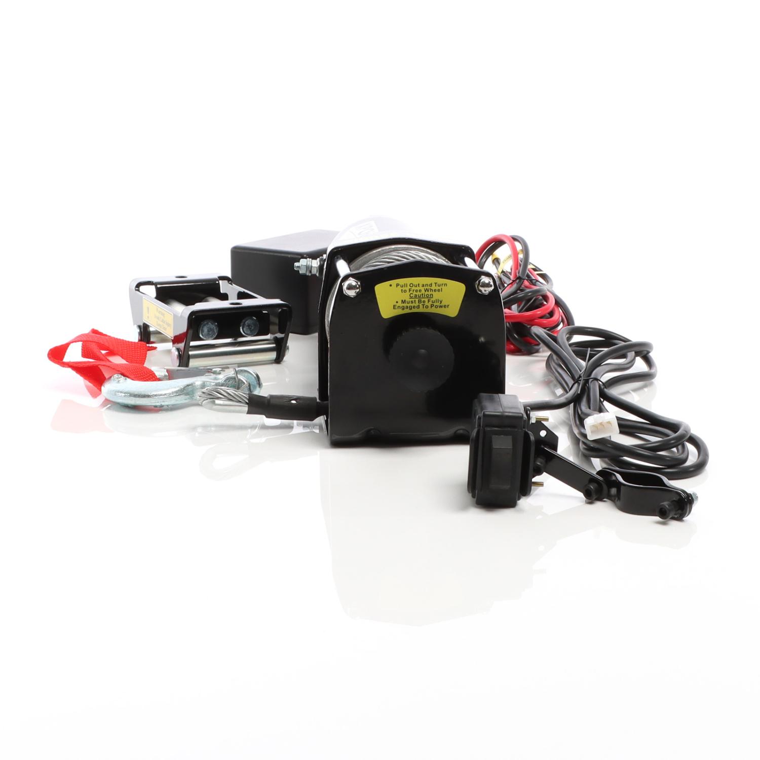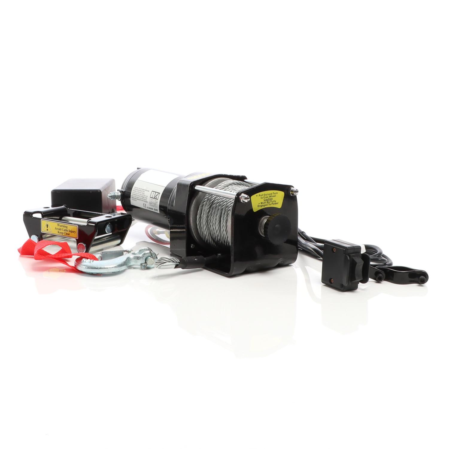 Den 1,5 hk motorn drivs med 12V och möjliggör en maximal lyftkapacitet på 1587 kg. Denna vinsch – även känd som släpvagnsvinsch eller båtvinsch – har ett planetväxel med en utväxling på 136:1. Lasten är säkrad med en lastkrok och ett extra säkerhetsspärr för säkrare användning.
